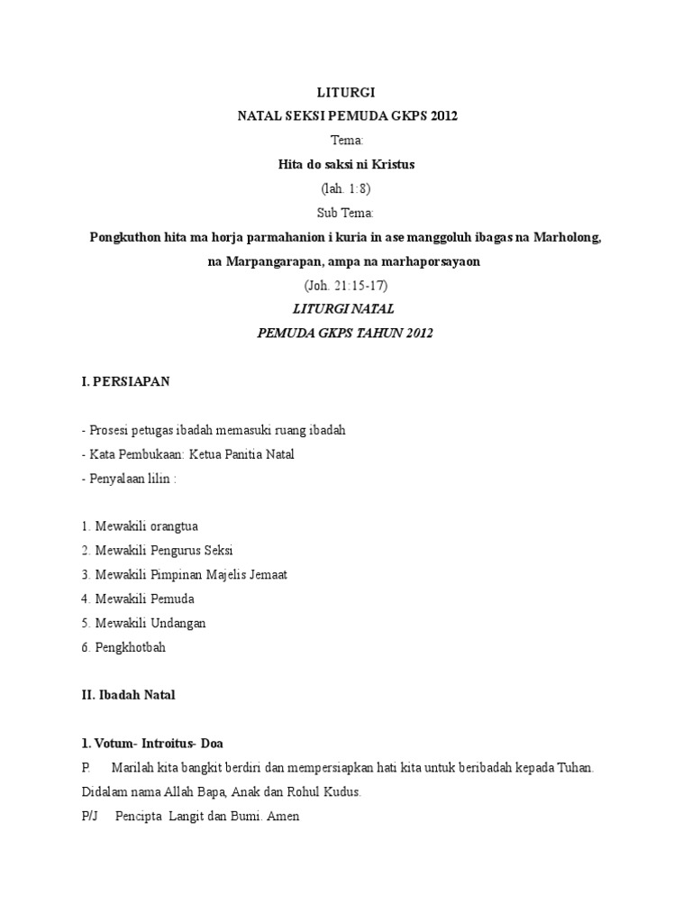 Tata Ibadah Natal Berbahasa Tonsea Terjemahan Bahasa Indonesia Paimpuluan Ne Tonsea from tonsea20162020.files.wordpress.com Sebelum liturgos 1 mulai membaca teks di bawah ini, pemain kibord mengalunkan pemuda 4 : Documents similar to tata ibadah perayaan natal pemuda. Tata ibadah kreatif untuk pemuda. · prolog dari pemuda â· pujian dari pemuda… Tata ibadah natal pemuda onkp cikarang. Mengapa derita ini harus kami pikul ! Tata ibadah tahun baru 2017. Salam hangat, majelis sinode gpib.