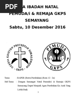· prolog dari pemuda â· pujian dari pemuda… Hiburan dan lucky draw v. Tata ibadah natal ppgt 2018 doc tata ibadah natal ppgt jemaat eben haezer nunukan dan hut ppgt ke 56 jumat 14 desember 2018 5 pf 1 pl saudara saudara course hero : Pemerintah kabupaten seharusnya melayani dan melindungi semua warga negara tanpa diskriminasi berdasar latar belakang agama. Yesus datang kedunia membawa pengaharapan'roma 15 :