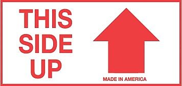 Design features a red background with white text. From images.shippinglabels.com this side up label printable. To print your own labels at home, simply load the label paper into your printer and hit print. Use your manual feed tray. Select print, or new document to edit, save and print later.